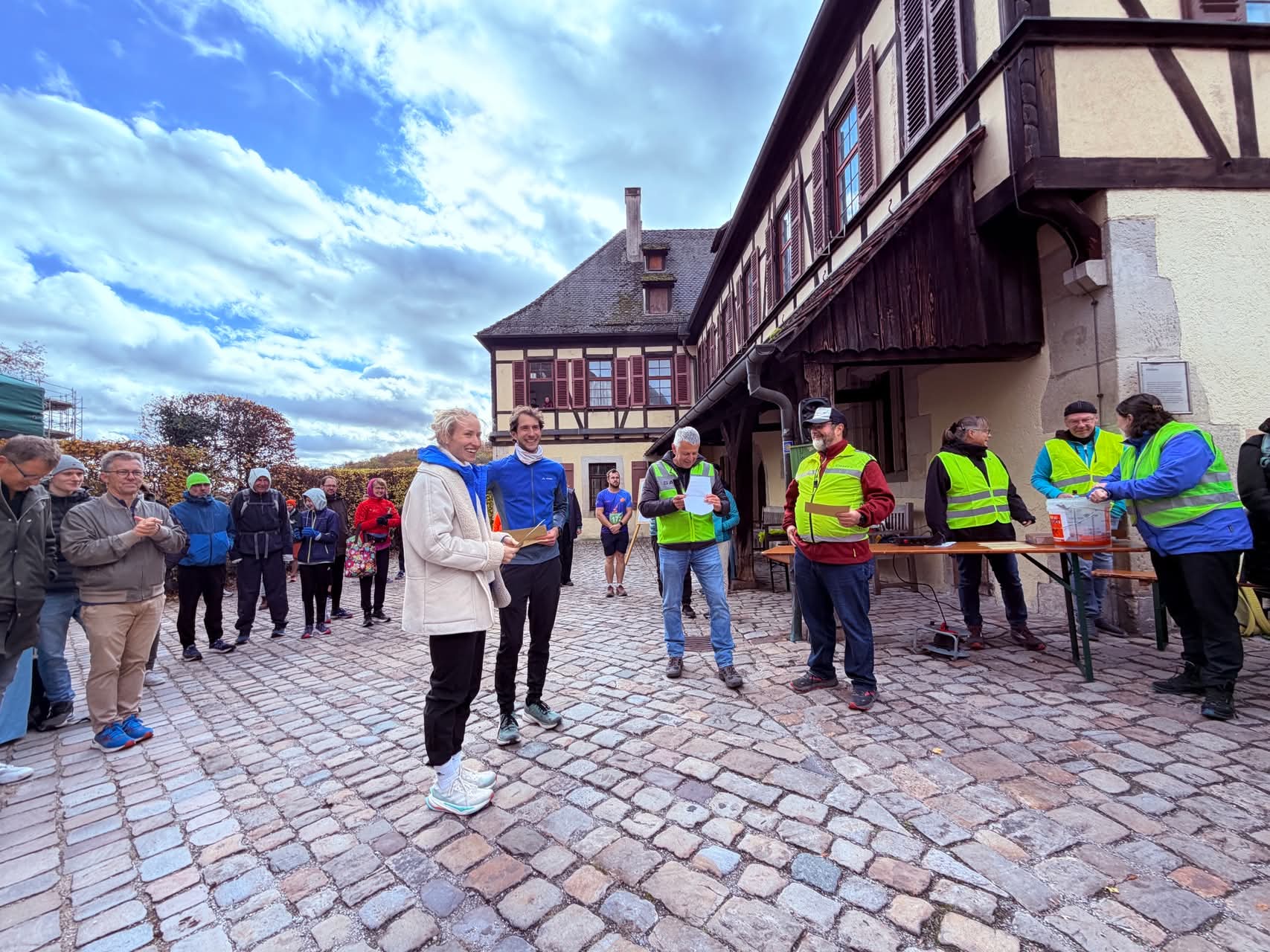 Bei feuchtkaltem Herbstwetter trafen sich 221 Aktive im Innenhof des Klosters Bebenhausen. Um 10.00 Uhr starteten die Walker, eine halbe Stunde später die Läufer auf die 8,5 km lange Strecke, die oberhalb des Klosters in den Schönbuch führte.