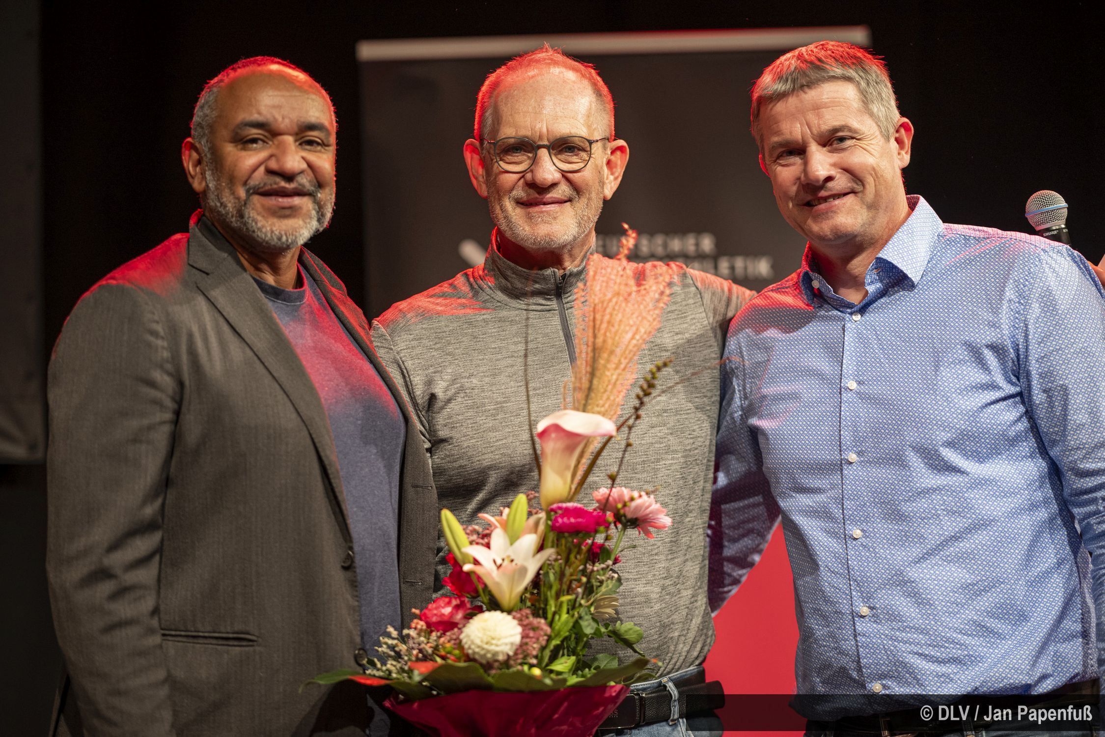 „Die Entscheidung ist uns extrem schwer gefallen und wir haben uns die Köpfe heiß geredet. Wir wollten keine punktuelle Leistung würdigen. Daher haben wir gesagt: Es sind beide zu ehren!“ erklärte Jurymitglied und DLV-Vorstand Leistungssport Dr. Jörg Bügner. Gemeinsam mit dem DLV-Vorstandsvorsitzenden Idriss Gonschinska führte er die Auszeichnung durch und überreichte Präsente von DLV-Partner Shokz. Ulli Knapp konnte diese persönlich entgegennehmen, Iris Manke-Reimers war aufgrund ihres Urlaubs nicht anwesend.
