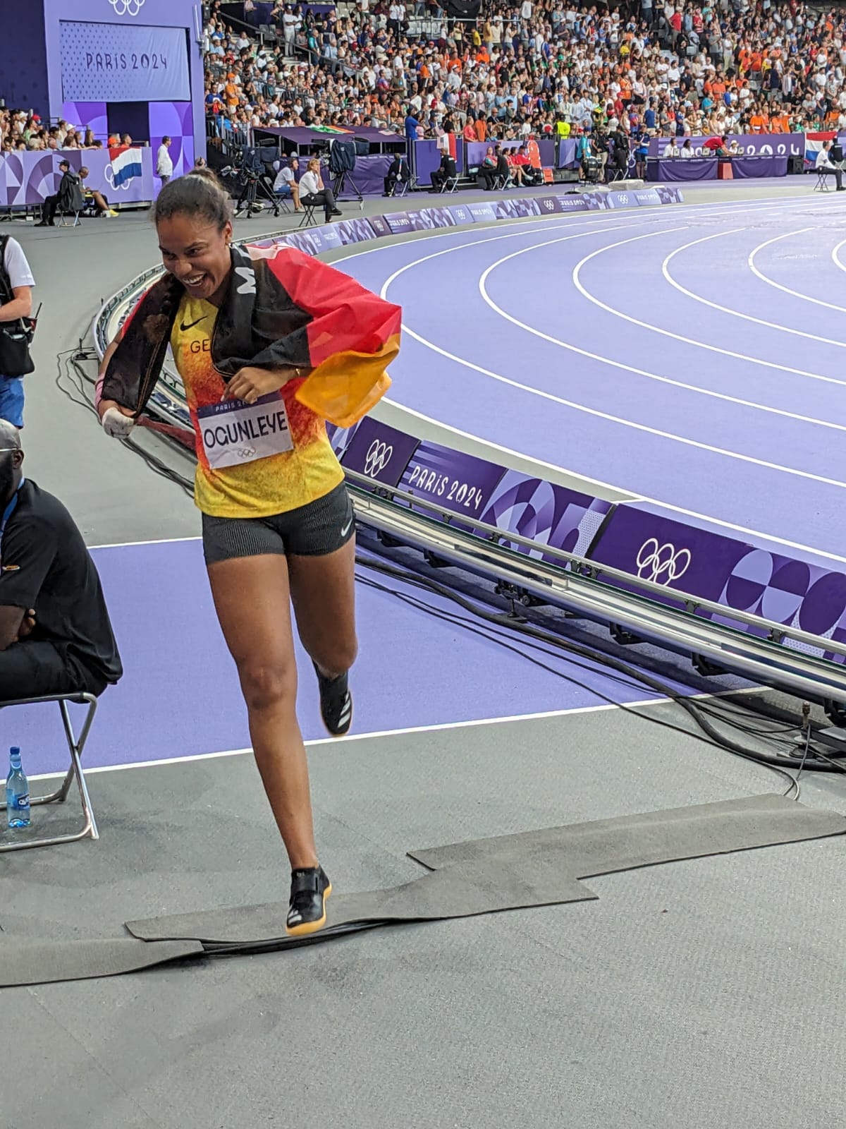 Yemisi Ogunleye vom MTG Mannheim hat im ersten Versuch leider Pech und erwischt einen ungültigen Versuch. Ihr zweiter Versuch hingegen ist mit 19,55 Meter extrem stark und ein sehr gelungener Einstieg in den Wettkampf. Auch der dritte Versuch misslingt ihr und sie erhält einen ungültigen Eintrag auf der Ergebnisliste. Ihr zweiter sehr guter Versuch katapultierte sie unter die besten und ihr gelingt es damit drei weitere Versuche zu bekommen und um die Medaillen