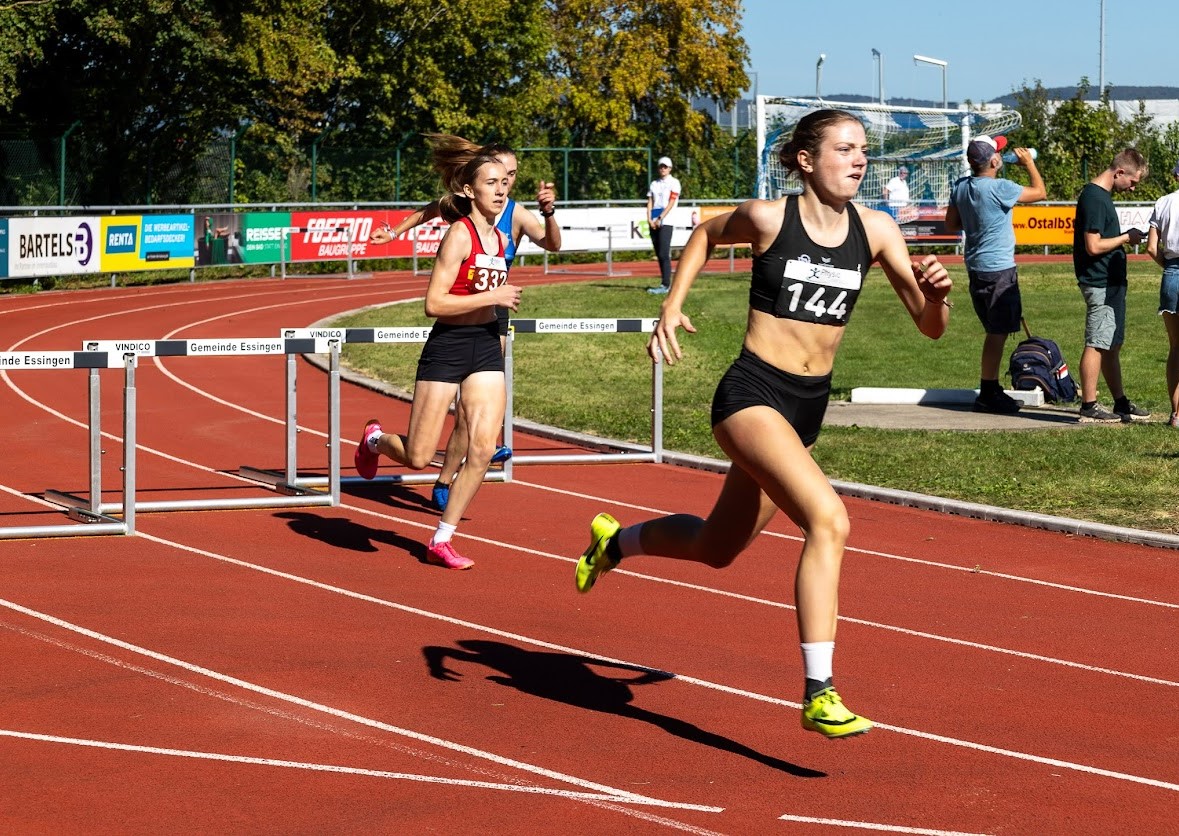 Und der wusste die Top-Bedingungen mit tollem Spätsommerwetter zu nutzen: Lokalmatador Justin Hopfensitz (TSV Oberkochen) steigerte sich bei seinem Dreisprungsieg um über einen Meter auf 13,34 Meter und rückte ebenso in die DLV-Top 3 auf wie Sina Stoll (TB Tailfingen), die den Hochsprung mit 1,70 Meter für sich entschied. Im Weitsprung verbesserte sich die ein Jahr jüngere Teresie Hess (SG Schorndorf 1846) auf 5,58 Meter und holte sich souverän den Sieg. Das gelang auch der deutschen Meisterin Mara Dümmler (VfL Sindelfingen), die nach übersprungenen 3,30 Meter gleich aufs Ganze ging und erst an der neuen deutschen Jahresbestleistung von 3,60 Meter scheiterte. Ebenfalls zwei Sprungsiege holten sich die Jungs: Hannes Klecker (SSV Ulm 1846) dominierte den Weitsprung mit 6,30 Meter, Henri Massing (MTV Stuttgart) lag im Hochsprung mit 1,82 Meter vorn. Während die Württemberger in den technischen Disziplinen überall vorn mitspielten, gelang das im Sprint und Lauf kaum. Lediglich mit Hürden gelangen zwei Erfolge: Luke Schmidt (SpVgg Holzgerlingen) holte sich in 11,30 Sekunden die Kurz-, Nina Sippel (LG Neckar-Enz) in 47,55 Sekunden die Langhürden. Sehr gut schlug sich die erstmals gelaufene 4x 800 Meter-Mixed-Staffel, die den stimmungsvollen Abschluss bildete: Nachdem Pitt Wanninger als Schlussläufer noch mal zu Bayern aufgeschlossen hatte, hatten die Weißblauen aber auch hier die Nase vorn.
